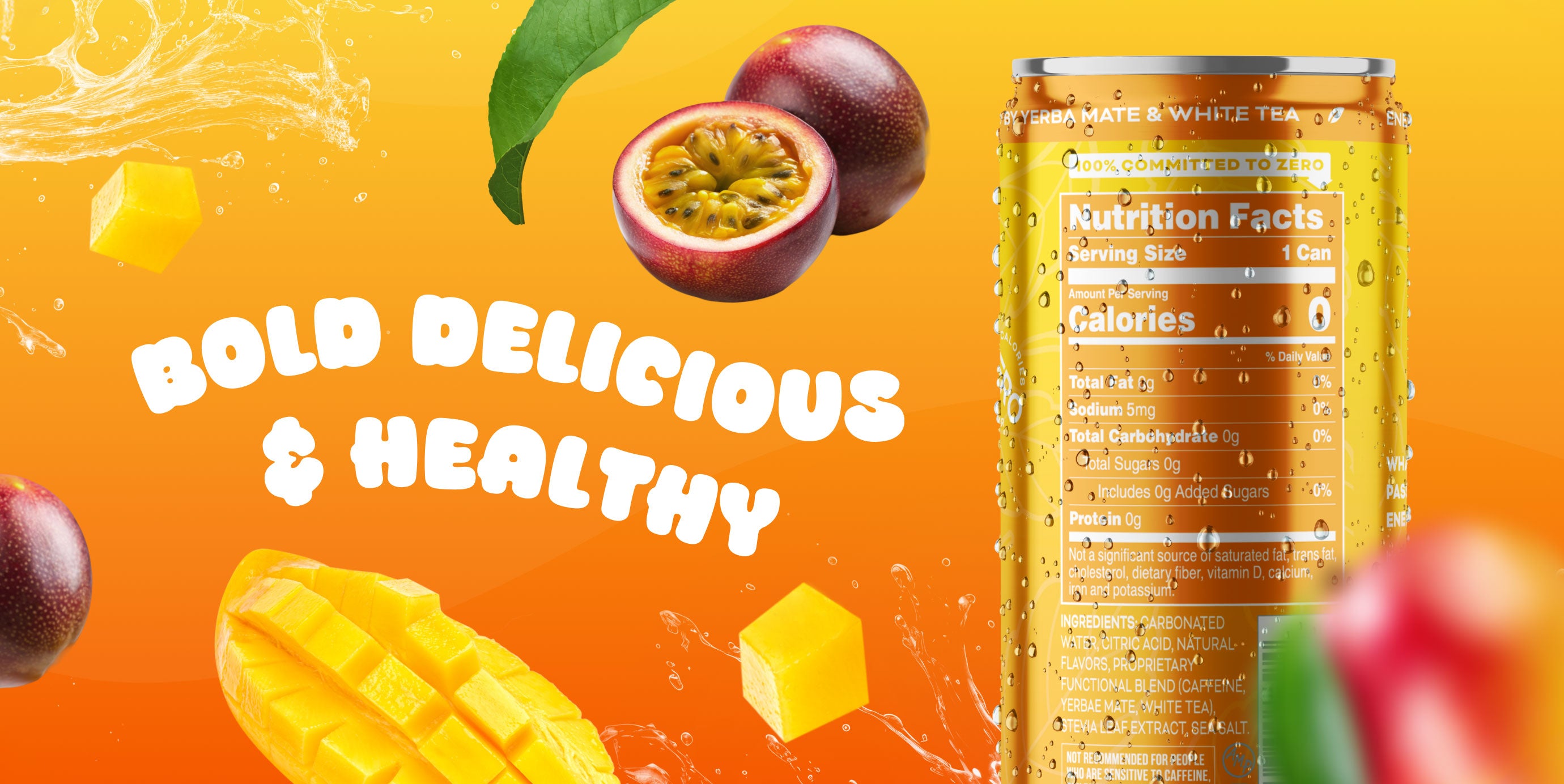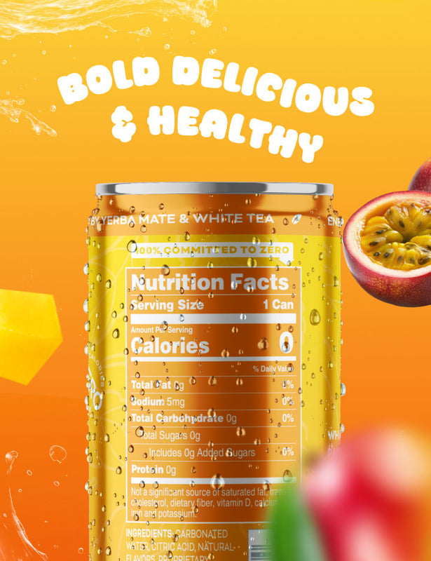 What does Mango Passionfruit energy feel like? It’s like the thrill of finding a blessing in disguise, but you’ve found it on a tropical beach and the blessing is a fresh mango that’s disguised as an even fresher passionfruit. Naturally sweetened in our slim 12oz size!!